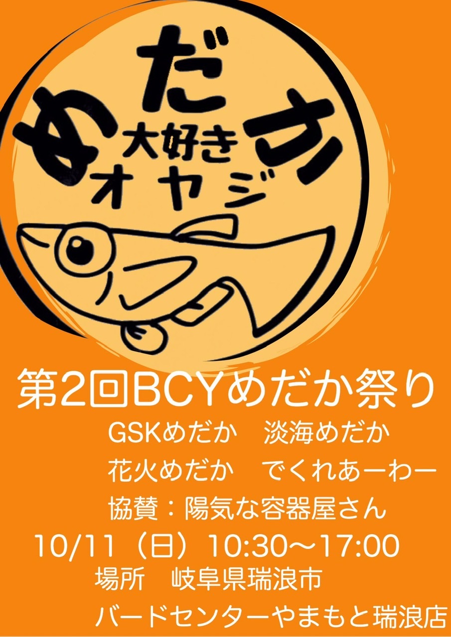 10月11日の日曜日は岐阜瑞浪が 熱い。めだか大好きオヤジ滋奈岐組が突っ走るイベント‼【第2回BCYめだか祭り】シーズンオフ前に、良個体を ゲットできる チャンス‼