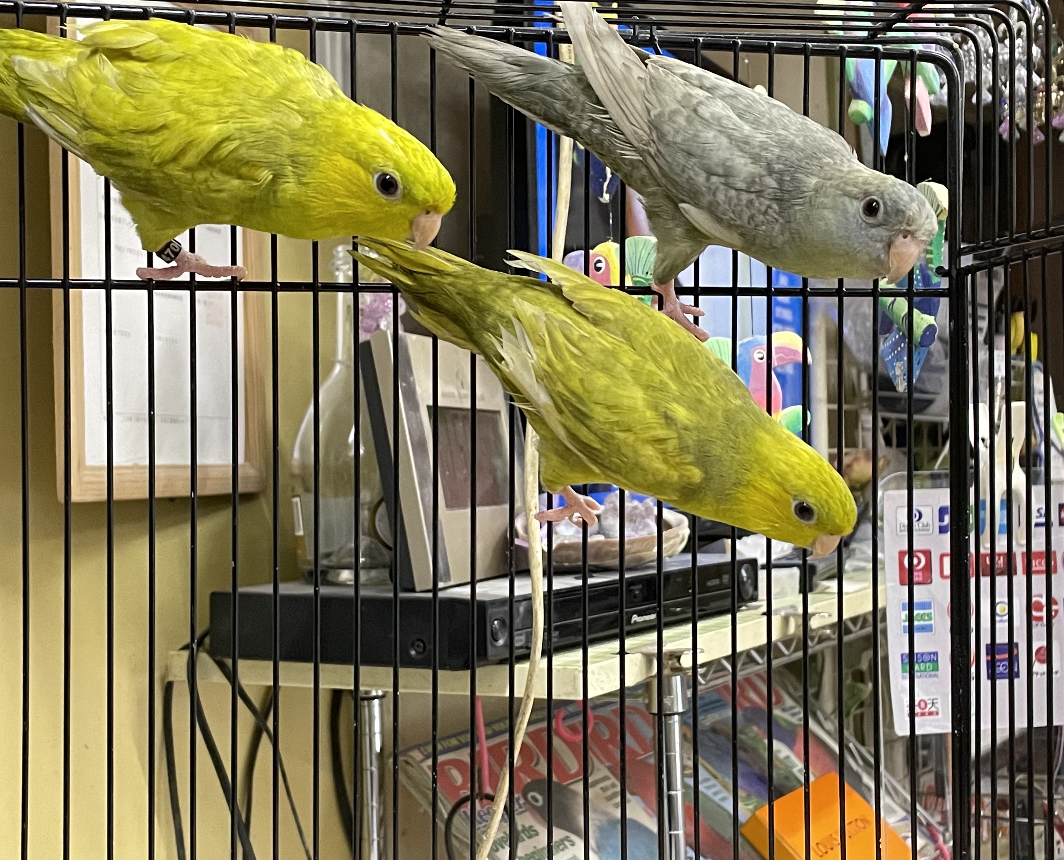 親物 1~2歳雌雄無鑑別1羽 ¥5000手乗りではありません。両端の2羽決まりました。残り黄緑の子が1羽も決まりました。完売しました