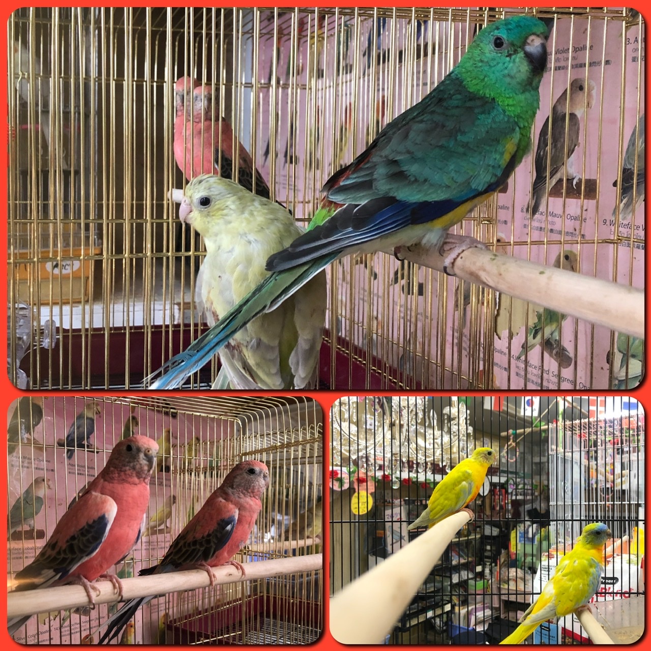 【五色青海インコ】¥120000 【セネガルパロット(ネズミガシラ)】¥220000 【錦華鳥】¥2500 【羽衣セキセイインコ】¥4000