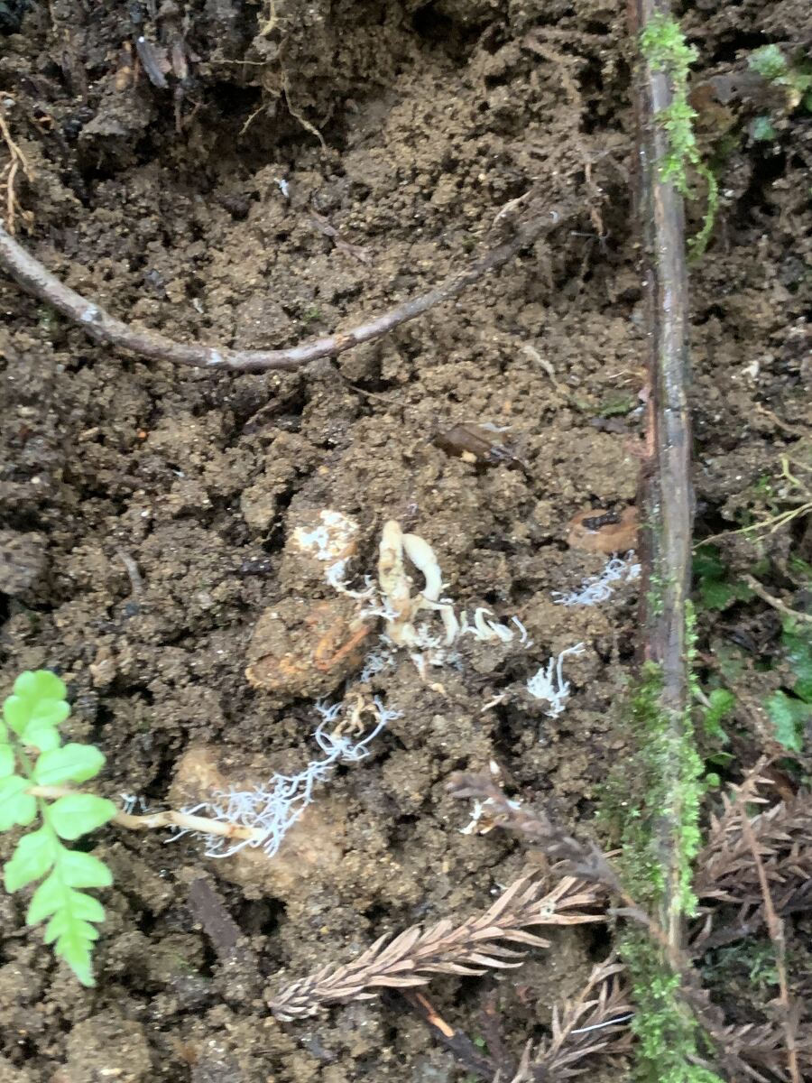 ザトウムシタケの発見、おめでとうございます! 私は石の裏で見つける事が多いのですが、本州でも朽木の裏で発生することがあるのですね。驚きました。