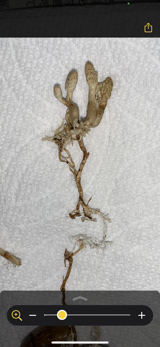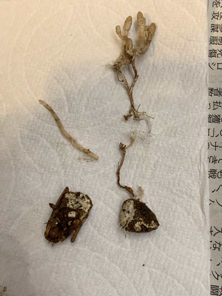 ザトウムシタケで間違いないと思います。 おめでとうございます! 発見の難しい、大変貴重な冬虫夏草です。