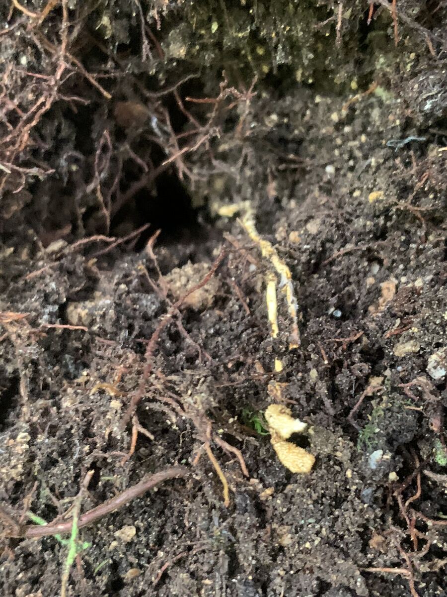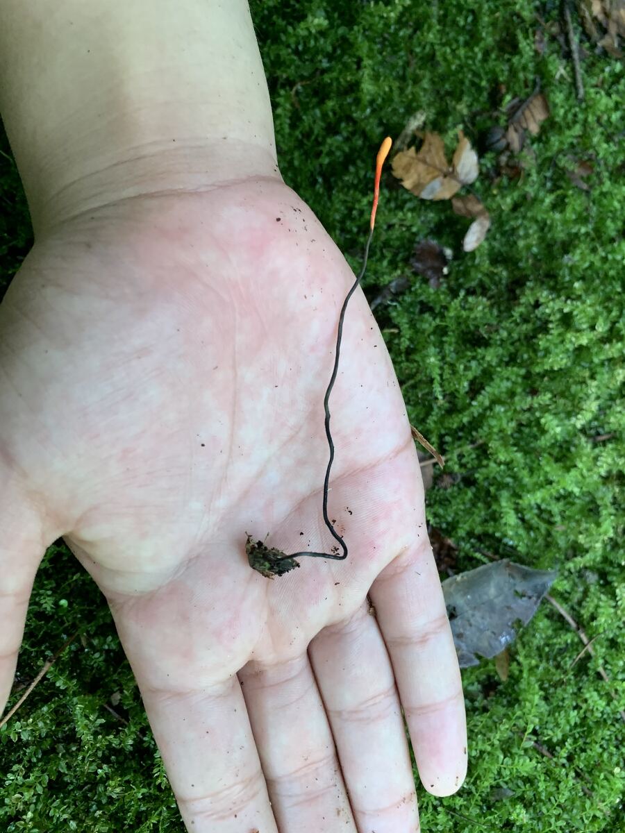 前回のザトウムシタケが発生していた朽木の近くの朽木でまたザトウムシタケではないかと思う冬虫夏草を見つけました。未熟体に見えますが、どのくらいで成熟するものでしょうか??