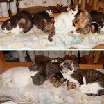 相変わらず…トロンボーンさん宅のニャンズは仲良し… コモモたちの一緒に寝る姿見たいです😁