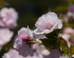 千島桜は、2022年05月08日に「創成川の河川敷なのですが、私の散歩コースから少し外れているので気が付かず、半分散りかけていました。辛うじて 花を写す事が出来ました。」とのコメントを付けて送ってくれていますよ。